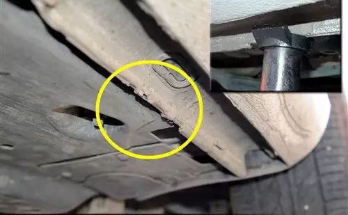 下一步就要使用千斤顶了!千斤顶都是有支撑位置的,一般在车辆中部下方,车辆都会有标注!一般距离轮胎10-15公分!如下图所示!