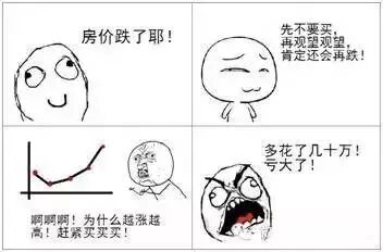 楼市变化多端,永远没有顶和底,没有谁会知道未来跌多少涨多少。涨可能是跌的开始,而跌就是涨的先兆,心态是关键。“买涨”的心态助涨了开发商涨价,最终还得自己吞下“苦果”。