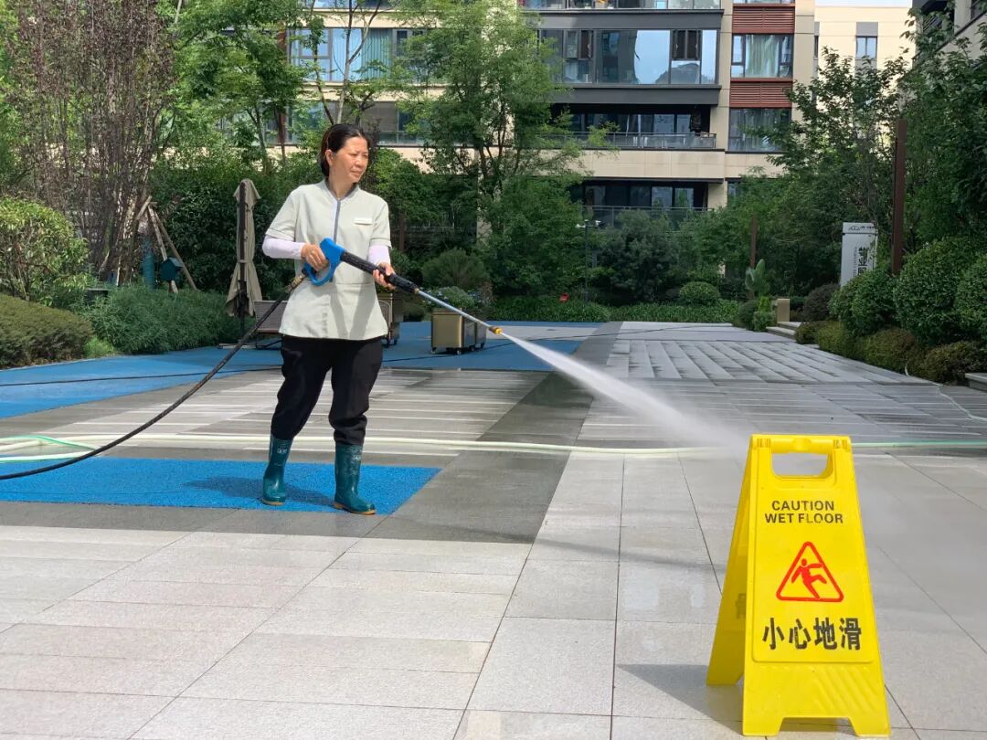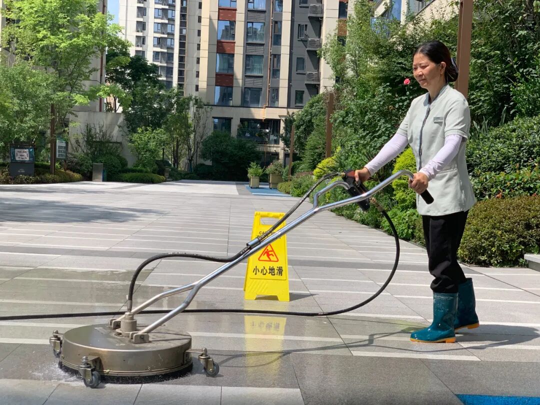 在传统印象中,物业清洁不过是扫帚、拖把、抹布的 “老三样”,但兴业源服务在中车共享城实施维清洁工作法打破了这一固有观念,构建"机械深度清洁+人工精细维护+智能动态监测"的三维作业体系。机械层配置新能源扫地车、高压冲洗车及护栏清洗车等特种装备,建立"全地形覆盖+全天候响应"的机械化作业矩阵;人工层实行"三班两运转"巡检机制,采用纳米级纤维抹布与食品级消毒剂,执行窗框沟槽≤3mm积尘量、地砖接缝≤0.1ml污水残留量等36项精细标准。