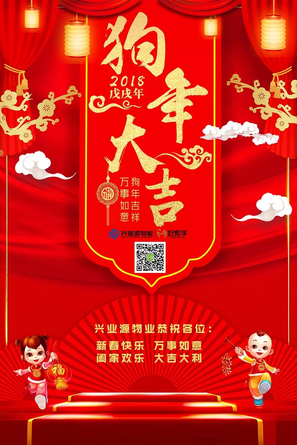 万家团圆,有那么一些群体,却远离家人,坚守岗位。当你享受春节假期的快乐时,或许,他们正在打扫, 或许他们正在站岗,或许,他们正在维修……越是在节日时,他们越忙碌,因为他们要为大家愉快过节保驾护航,这就是我们物业人。狗年锣鼓已唱响,唱出心中喜乐扬。烟花炮竹映红天,映出快乐笑灿烂。千家万户笑声传,美酒飘香碰杯响。兴业源物业恭祝各位:欢乐祥瑞,事业兴旺,财源滚滚,吉星高照,如意平安,阖家幸福!