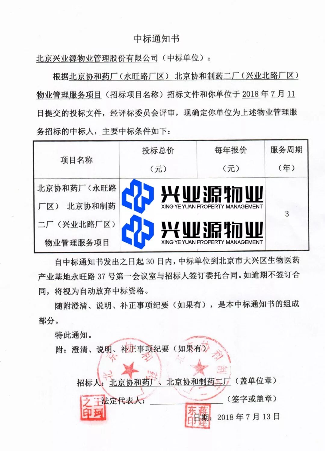 本次投标,在市场部多个日夜的奋战,对投标文件反复修改及对照招标文件反复确认后,兴业源物业投标代表赶赴北京协和药厂进行投标。