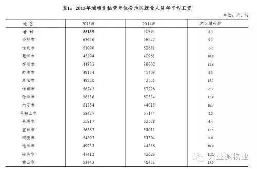 △安徽2015年城镇非私营单位分地区就业人员年平均工资。来自安徽统计局网站