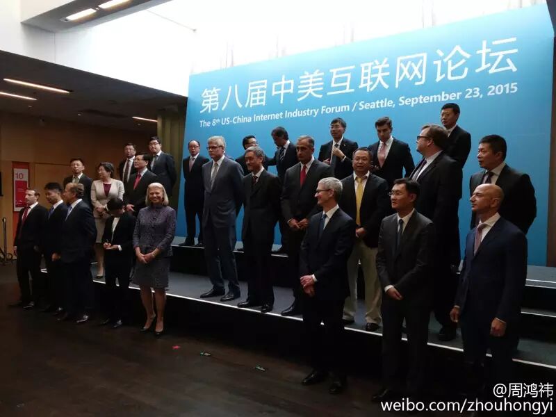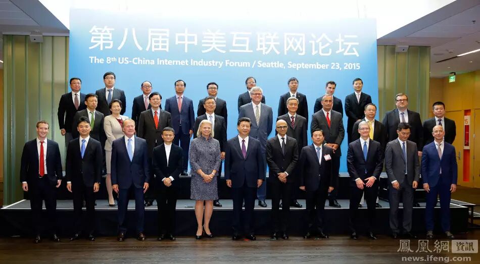 中美互联网论坛上的马云、库克、扎克伯格等人。