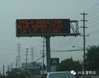 ▲美国交通系统在路边的电子显示器上打出的儿童被绑架的警报