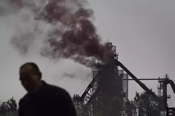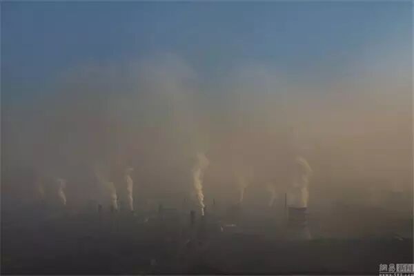 唐山迁安市九江线材炼钢厂区每天排放大量的二氧化硫、二氧化碳、重金属离子、二噁英等污染物。从远处望向厂区,天空中出现泾渭分明的“霾际线”。
