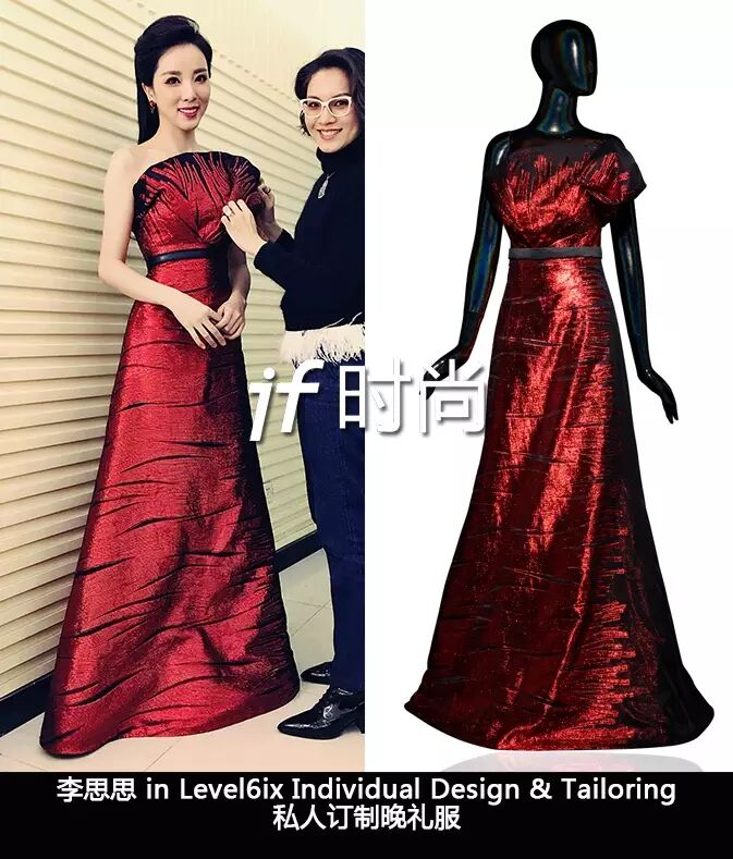 ▲李思思的酒红色私人定制晚礼服,作为主持人的服装,还蛮大方得体。
