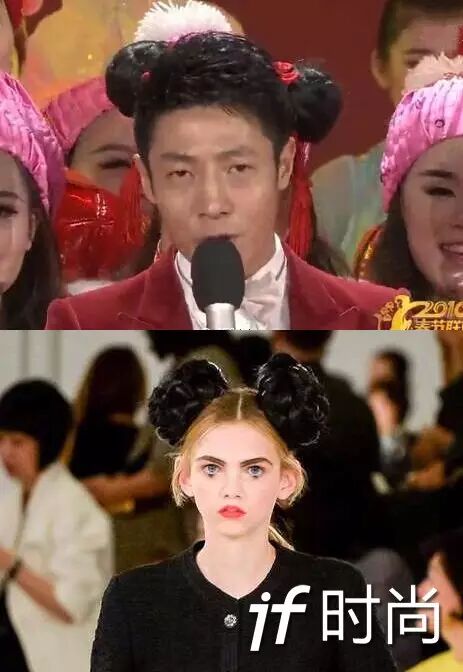 ▲撒贝宁不小心就来了一个香奈儿同款发型。