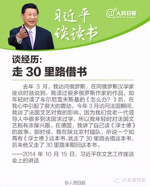 4月23日是世界读书日。众所周知,习近平是一个很爱读书的人,他把读书当作一种生活方式。他留给陕北梁家河村老乡们的印象之一就是“爱读书”,他们记得他“带一箱子书下乡”,在煤油灯下看“砖头一样厚的书”,“有时吃饭也拿着书”。
