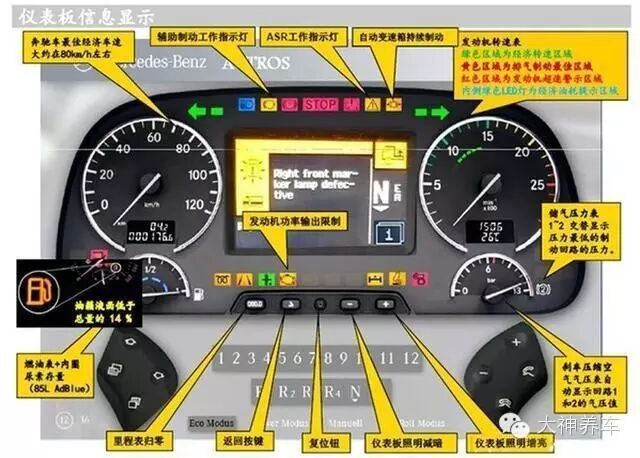 包括:车速表、转速表、里程表、行程表、燃油表、水温表、油压警示灯、制动系统警示灯等。