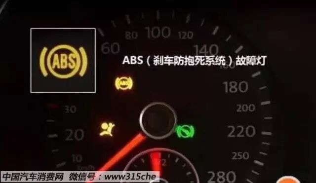 ABS指示灯用以显示车辆ABS系统的工作状态,其颜色以黄色为主。拧动钥匙,车辆进行自检时该指示灯会亮起,启动汽车后指示灯自动熄灭。如汽车自检时指示灯不亮,或启动汽车后指示灯常亮,均表示ABS系统可能存在故障。