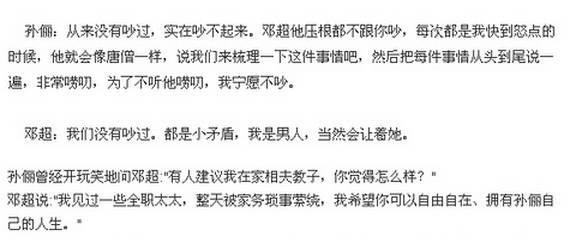 而邓超作为一个生活白痴,自称要依靠孙俪生活。两个很奇怪的人,就是有别样的圆满。