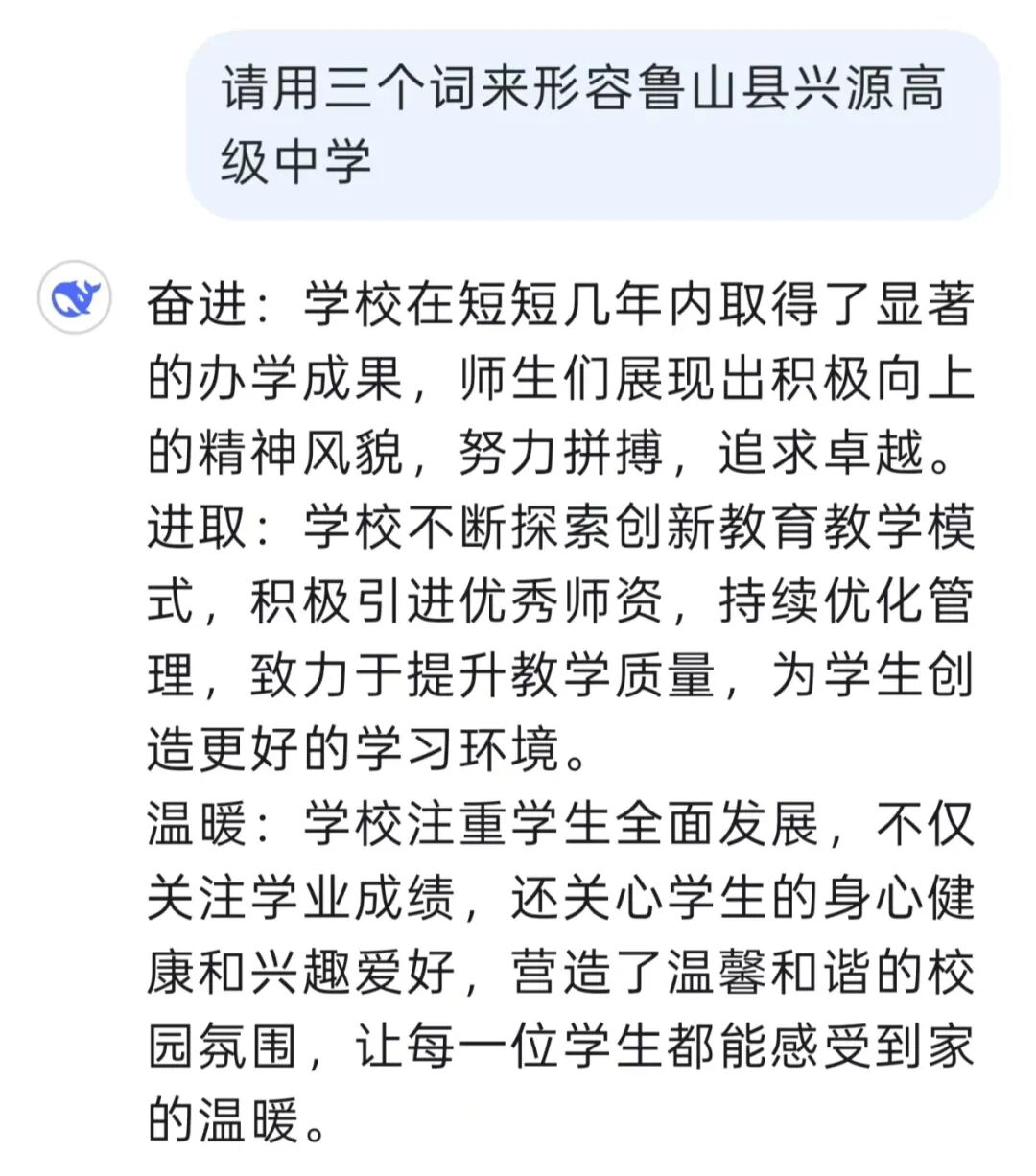 就让我们来看看DeepSeek眼中的兴源高中是什么样子的吧?