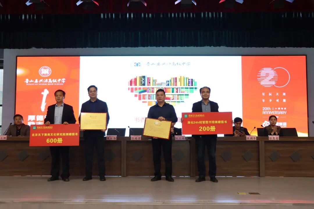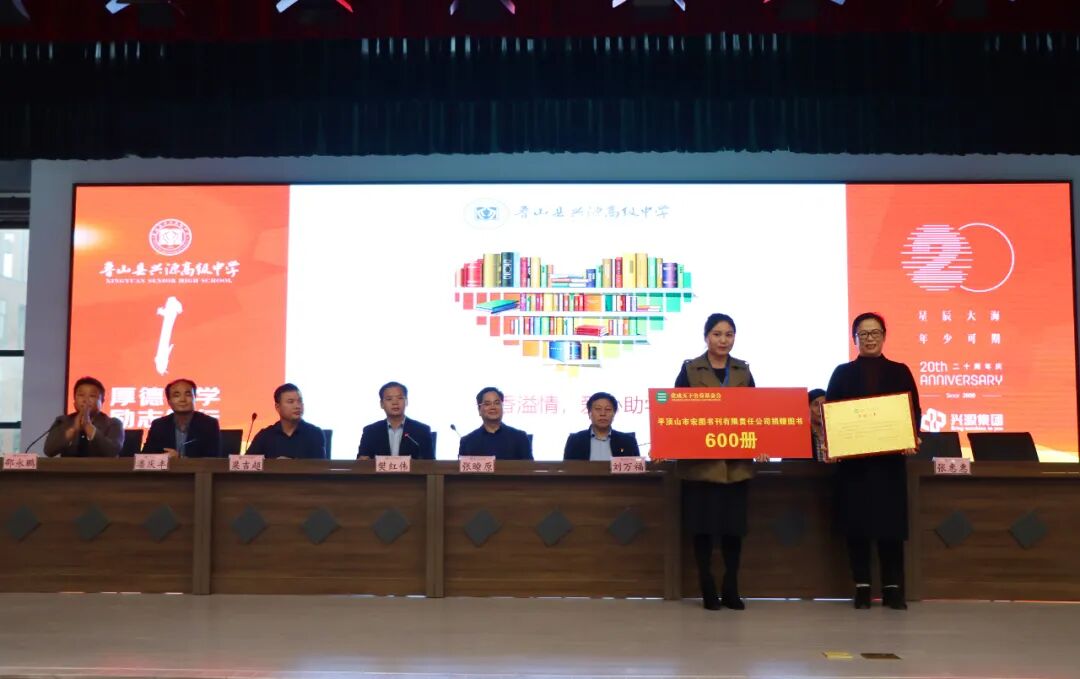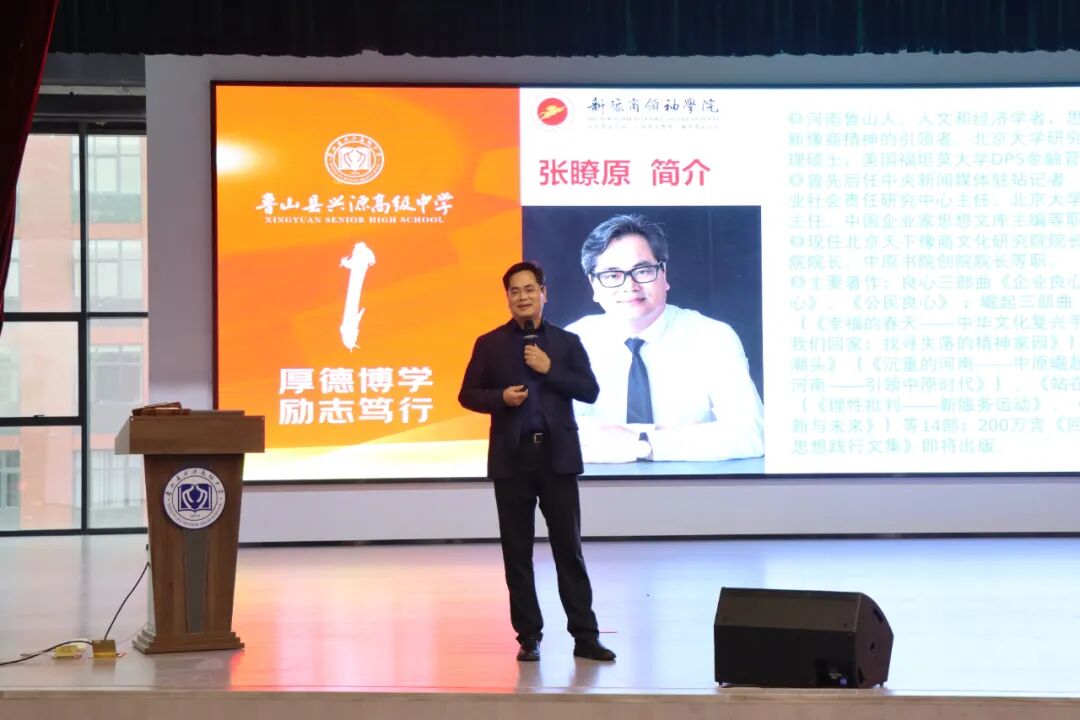 刘部长对兴源高中一年多来取得的成绩表示赞扬与肯定,此次捐赠活动为学校校园文化建设增光添彩,对推进学校思想道德建设和书香校园建设具有重要意义。在此我有以下三点希望:一是希望兴源高中进一步强化学校管理,提升办学品位,为师生创建一个学习好、工作好、生活好的优良环境,要把兴源高中办成鲁山人民更加满意的学校,为国家和社会输送更多优秀人才。二是希望全体教师充分发挥今天所赠图书精神食粮作用,在广大师生中掀起一股读好书、好读书的学习热潮。通过多读书提高素质、开阔视野,增长知识、拓展思路。三是希望广大同学们珍惜人生的黄金时段,珍惜身处的高中校园,既要脚踏实地,又要志存高远,走进书本、坚定信念,享受读书的乐趣,感受阅读的力量,放飞心中的梦想,走向明天的辉煌!捐赠仪式结束后,新豫商学院领袖院长张瞭原院长“以成长的故事”为主题,围绕成长、成功、选择、努力、坚持五个方面,结合自己的亲身经历为学生们上了一堂精彩纷呈的励志报告课,他激励学生们趁现在一定要抓紧时间并且合理地利用时间去学习,相信奋斗坚持的力量,用不懈的努力去点亮人生梦想。