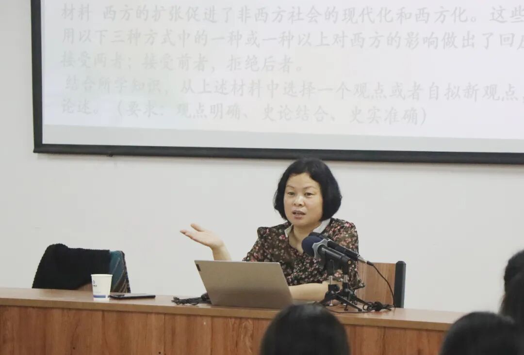 周沛耕老师则以剖析原创题为重点,结合例题,从情境设计、方法提升、思路开拓三个方面进行了剖析和讲解,为前来参会的老师们提供了新的教学思路和策略。同时,根据最新的高考命题趋势:①出题稳定;②基础考点覆盖面扩大;周老师提出,高考备考工作应具有综合化、观点化和规范化。
