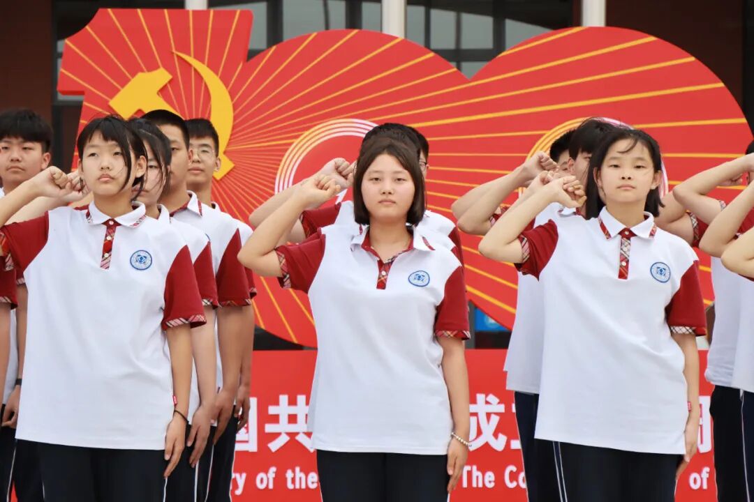 伴随着鲜艳的五星红旗冉冉升起,全场肃立,面对国旗庄严宣誓。全体师生面对国旗庄严宣誓,秉承先辈遗志,铭记历史,振兴中华。