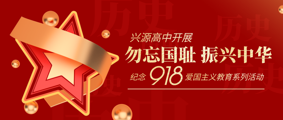 今年是“九一八”事变爆发90周年,这不仅是刻在亿万中华儿女心口上的一道伤疤,也是中华民族一段悲惨屈辱的苦难历史,更是一部觉醒奋起的悲壮史诗。为进一步弘扬爱国主义精神,加强爱国主义教育,激发学生们爱国热情,兴源高中开展“勿忘国耻 振兴中华”纪念“九一八”爱国主义教育系列活动,号召全校学生勿忘国耻、居安思危、自立自强、报效祖国。