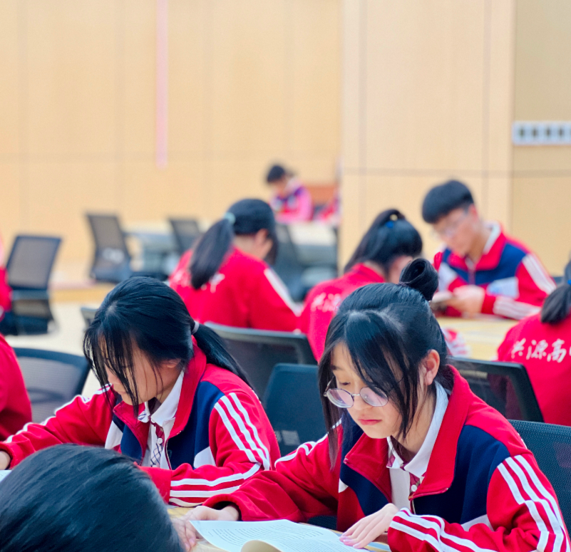 学生在图书阅览室挑选自己感兴趣的图书阅读,浸在书香的世界里。有的同学选择了飞机知识图解,希望通过图文并茂的形式深入了解飞机构造;有的同学选择了鲁山县志,想在未来发展家乡建设,传播家乡文化。兴源学子们通过对书籍的阅读,可以丰富课外知识,激发读书兴趣,引发学生积极和大家分享读书感悟。