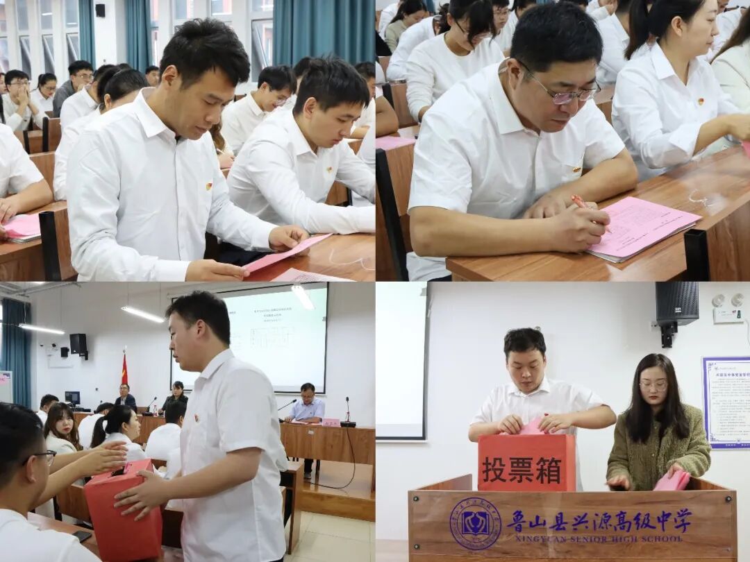 全体党员庄严地投出了自己神圣的一票,选举产生了新一届党总支委员会。选举各个环节公开公正、组织严密、规范有序、合法有效,采取无记名投票、差额选举的方式选举产生了付红娜、赵良杰、陈妲、赵彩芳、韩东晓五位同志为新一届兴源高中党总支部委员会委员。