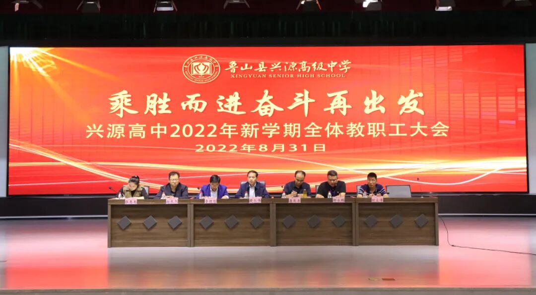 为进一步号召和引导全体教职工凝聚共识、踔厉奋发,促进学校新学期各项工作稳步进行。2022年8月31日上午,兴源高中在学校报告厅召开以“乘胜而进 奋斗再出发”为主题的新学期教师大会。学校校领导及全体教师共同参会,会议由综合办公室主任邵永鹏主持。