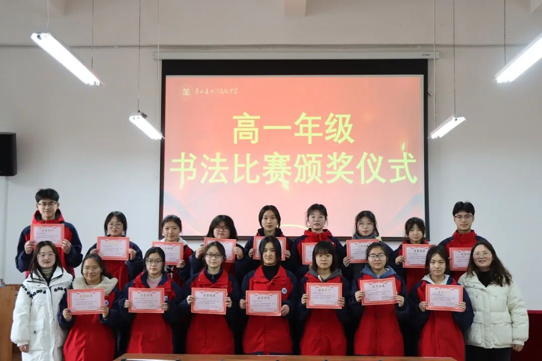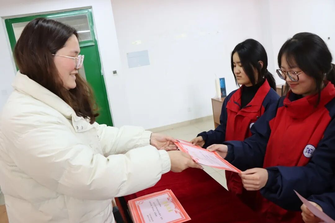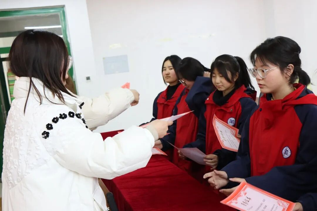 年级领导为获奖学生颁发证书