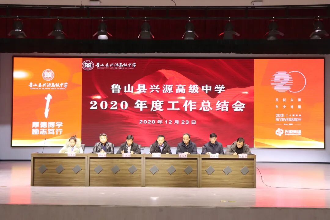 2020年12月23日上午,兴源高中2020-2021学年工作总结会在学校报告厅二楼举行。兴源高中校长樊红伟及校委会领导潘庆丰、李理想、侯永红、邵永鹏、赵良杰、张惠惠出席会议,全体教职工共同参加会议。本次会议由综合办公室主任邵永鹏主持。