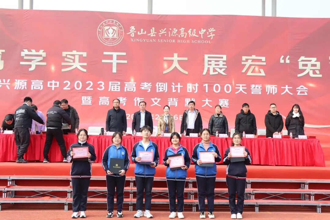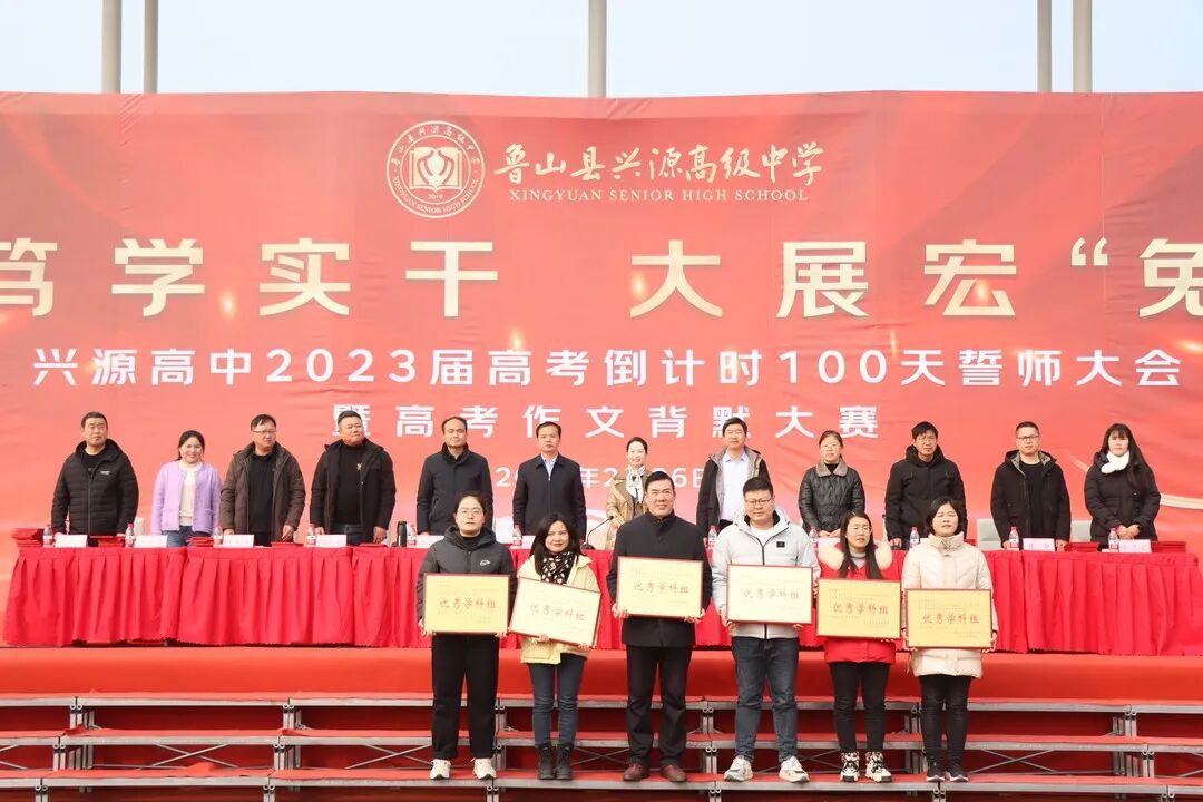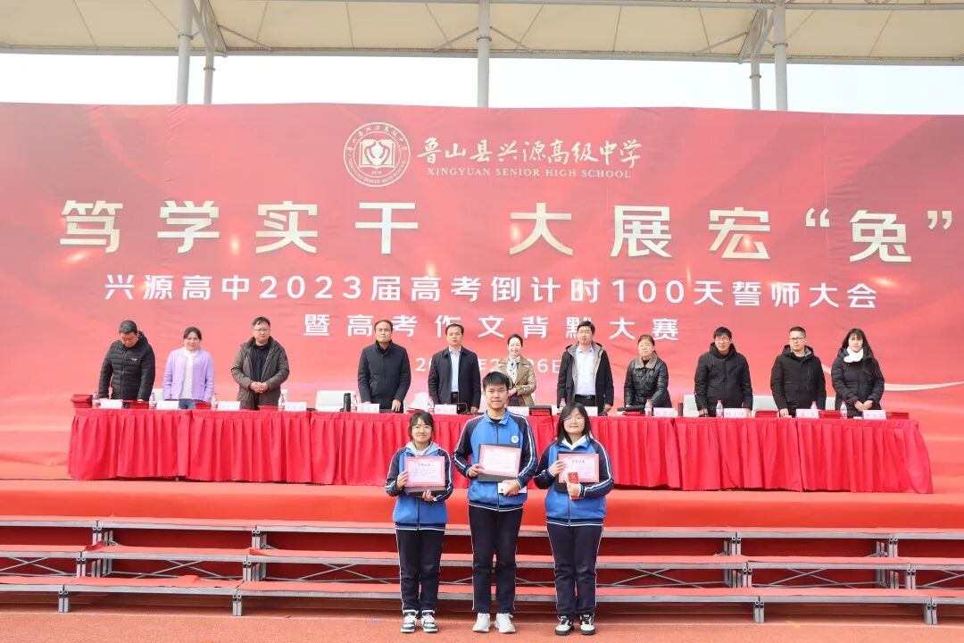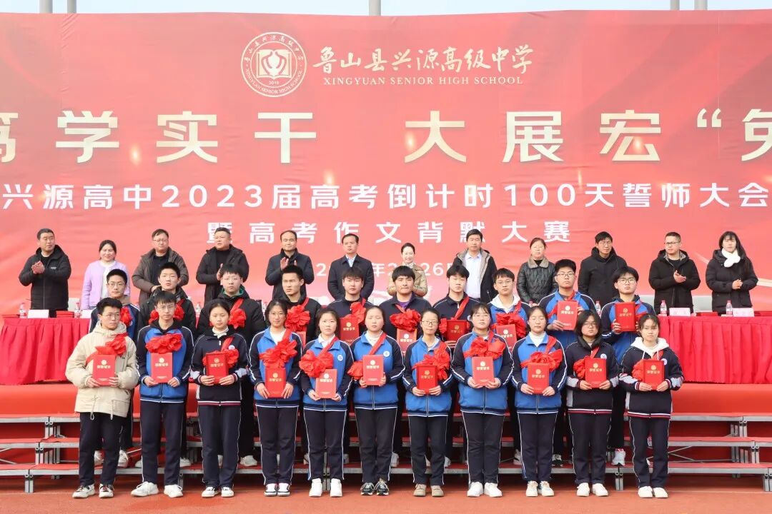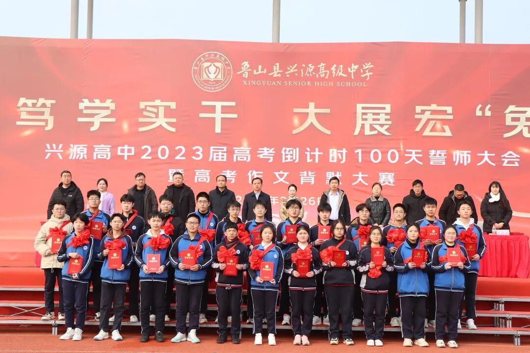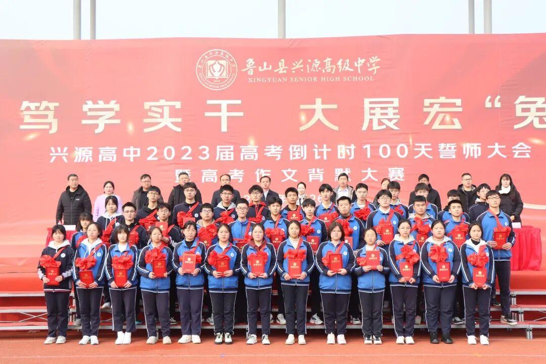 春寒尚未尽,热血已点燃。2月26日上午,兴源高中高三年级全体师生欢聚一堂,隆重举行2023届高考百日誓师大会暨高考作文背默大赛。