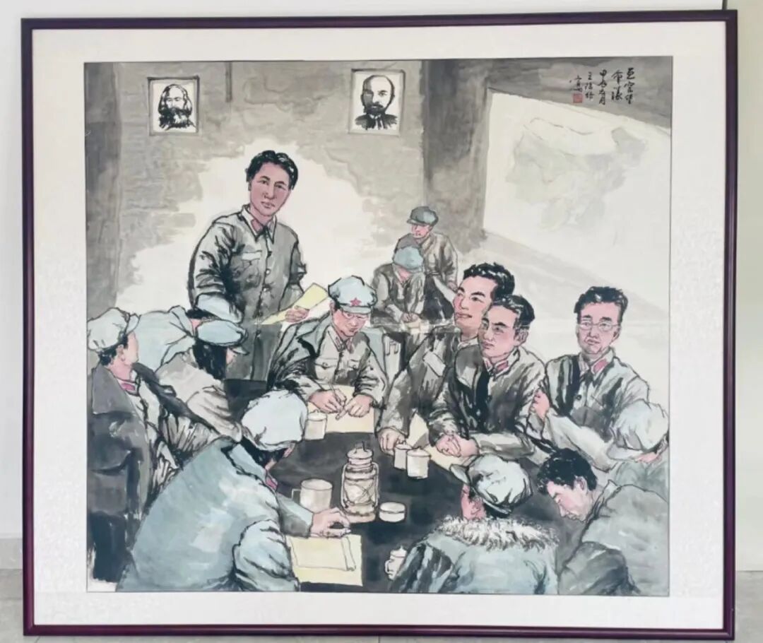 教师王陆培绘画作品《瓦窑堡会议》展现了历史事件的情景。历史是最好的教科书,也是最好的见证者,读懂中国共产党人的抉择,就能明白百年中国跌宕前行的征程中,那无数令人惊叹的奇迹源于何种无坚不摧的力量。让我们一同致敬革命先辈的奋斗历程,体悟初心与使命的千钧重量,让岁月沉淀的精神力量,激励我们跨越新时代的“雪山”和“草地”。