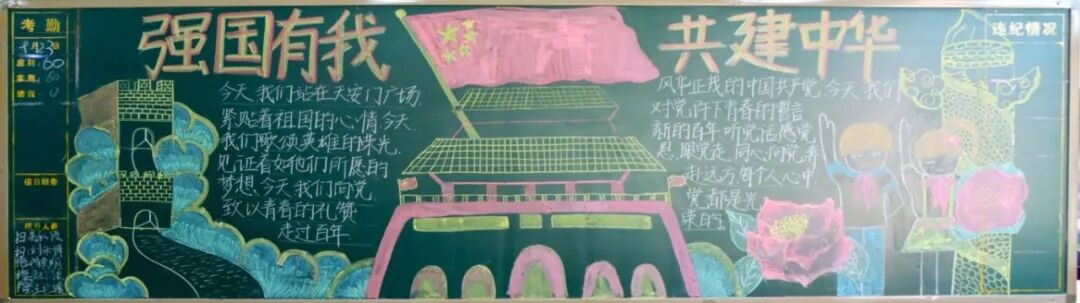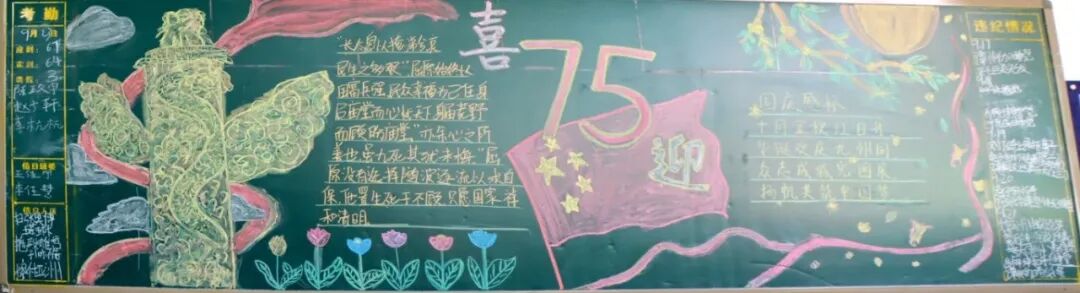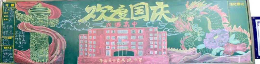 为庆祝建国75周年,加强学生爱国主义教育,引导学生树立社会主义核心价值观,丰富学生们的校园文化生活,兴源高中举办了“迎国庆 颂祖国”黑板报主题活动,共同表达对祖国75华诞的深情祝福。同学们踊跃参加,用一笔一画记录祖国75年风华,表达中华儿女的爱国情怀,也展示出兴源学子的风采。