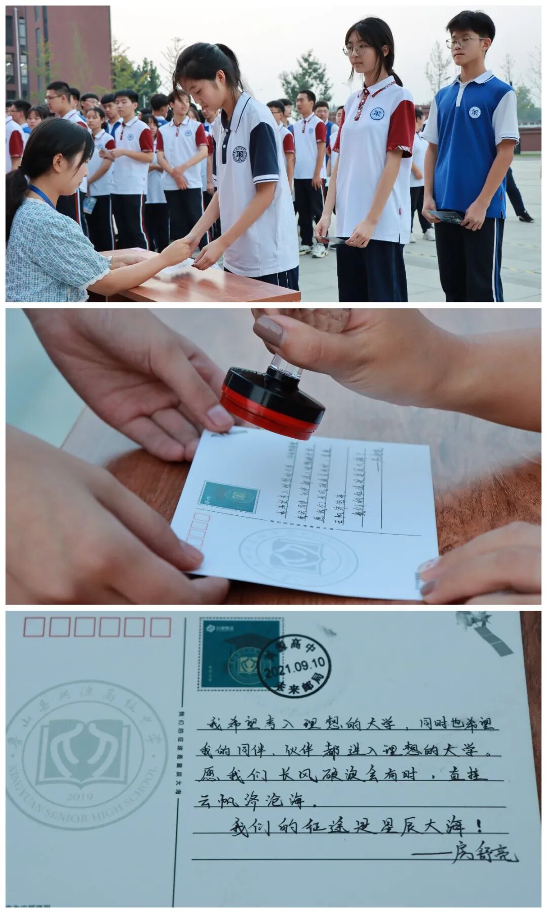 学校各年级学生代表向兴源高中未来邮局投寄自己的愿望和梦想,让梦想能够扬帆起航,逐梦九天。