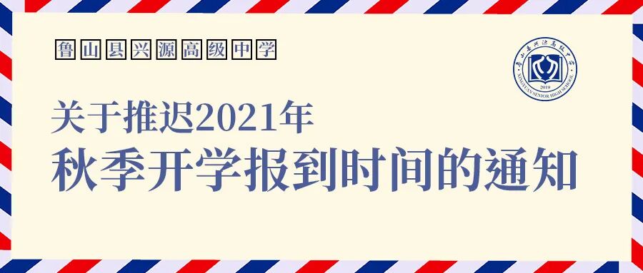 大家好!近期,国内部分地区相继发生德尔塔变异株输入性疫情,多地升级为中高风险地区,疫情防控形势仍然严峻复杂,根据县教育局新冠肺炎疫情防控工作领导小组办公室相关文件要求,经学校研究,决定暂缓我校各个年级开学时间(含高一新生报到时间),具体开学时间将根据上级教育主管部门安排,另行通知,请关注学校公众号注意相关通知。