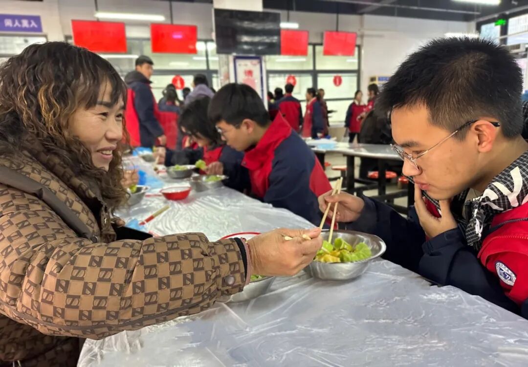 在大家齐心协力之下,热气腾腾的饺子新鲜出锅。孩子们迫不及待地将自己亲手包的饺子喂给父母品尝,家长们则满脸欣慰,眼神中满是对孩子成长的欣慰与自豪。这一碗碗饺子,不仅蕴含着冬至的节日祝福,更饱含着浓浓的亲情与家校情。