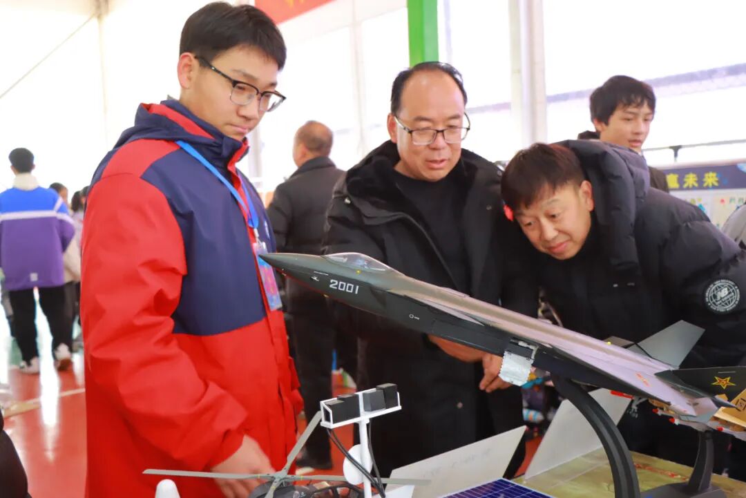 想象丰富的科技画作、做工精美的模型、奇思妙想的发明……在本次科技节上,我校展出航天模型、科幻画、手抄报等作品100余件。在活动现场,我校高一年级同学化身讲解员耐心地为大家讲解作品原理,并展示其特殊功能,吸引了大家的注意力。