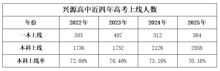 回首2022-2025 这四届高考成绩,数据就是我们实力的见证者。兴源高中一本上线人数从303人跃升至504人,本科上线人数从 1736人增长到2058人。累计一本上线人数1835人,本科上线人数8125人,在全省特控及本科上线率下降的形势下,兴源高中上线率发挥稳定,根据一分一段表计算,2025年河南省特控线上线率12.5%,本科上线率32.2%。本届高考,兴源高中特控线上线率17.2%,本科上线率70.1%,超过全省平均水平。