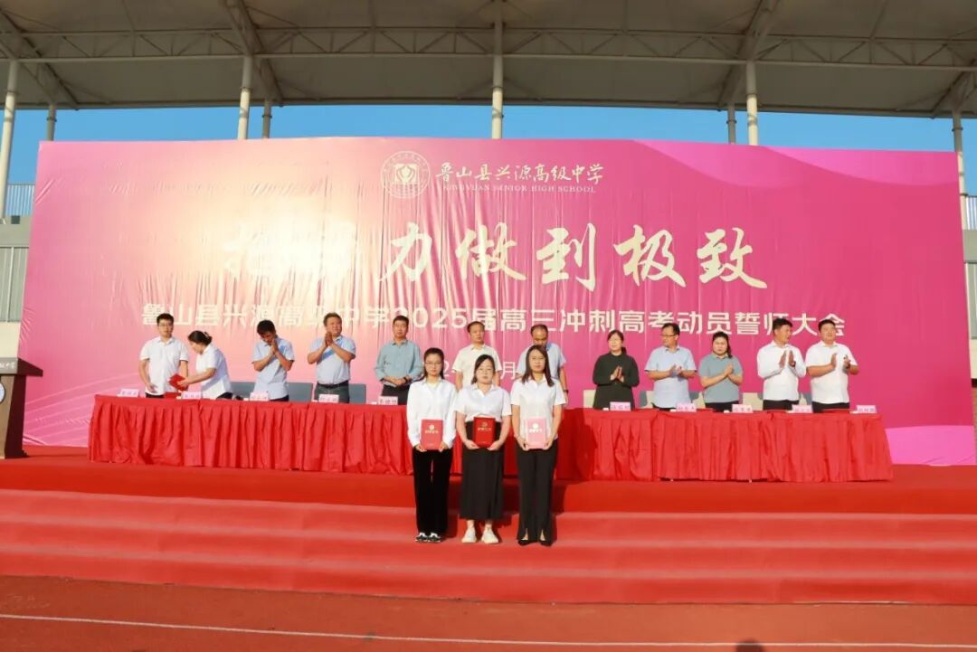 “我激情澎湃,信心百倍;我目标明确,用心专一……”高三学生声声誓言响彻校园,发出了向高考冲刺的号角。誓师大会让我们感受到了全体师生昂扬的斗志、拼搏的决心、必胜的信念。相信高三全体师生必将以高昂的士气、坚定的信心,奋力拼搏,圆梦六月,创造兴源新辉煌。
