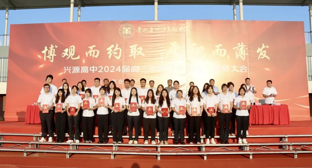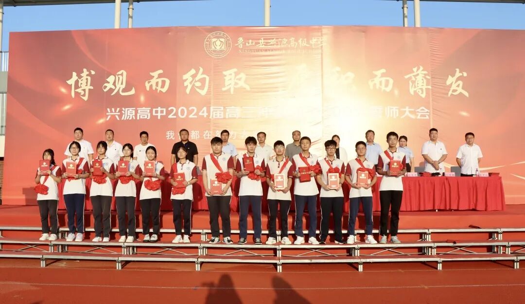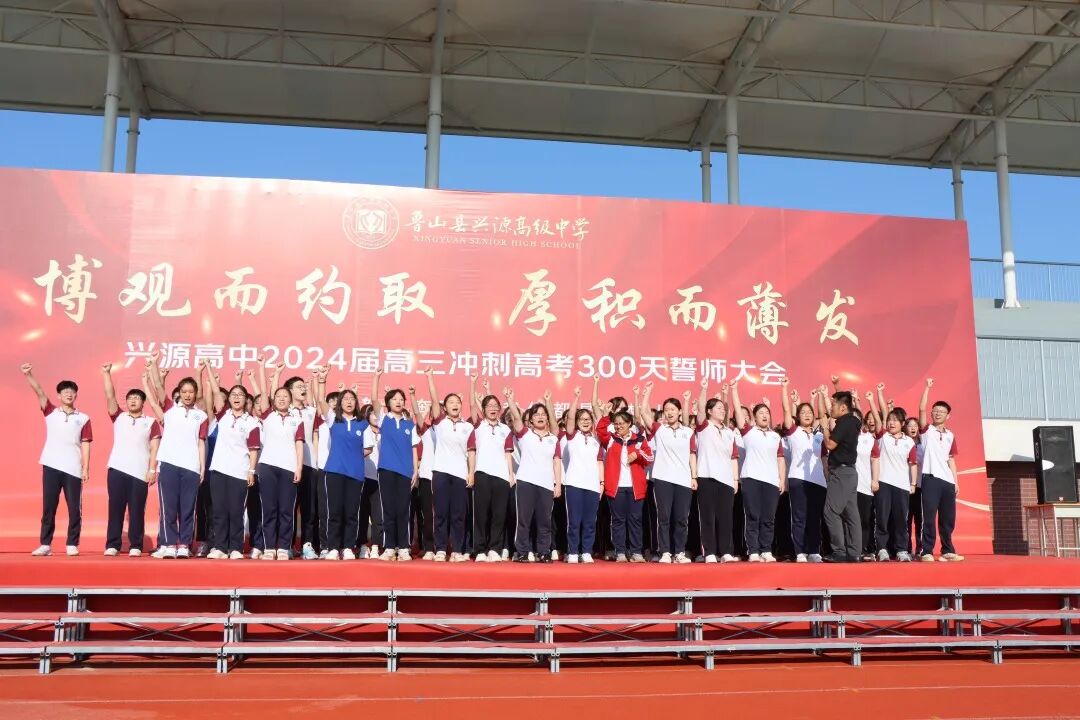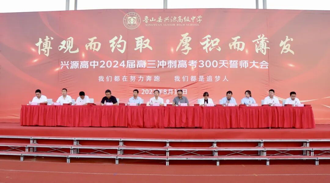 为鼓舞高三学生士气,积极备战2024年高考,8月13日上午,兴源高中召开以“博观而约取,厚积而薄发”为主题的高考倒计时300天誓师大会,兴源高中校长樊红伟、校领导及高三全体师生参加。会议由高三年级主任赵良杰主持。