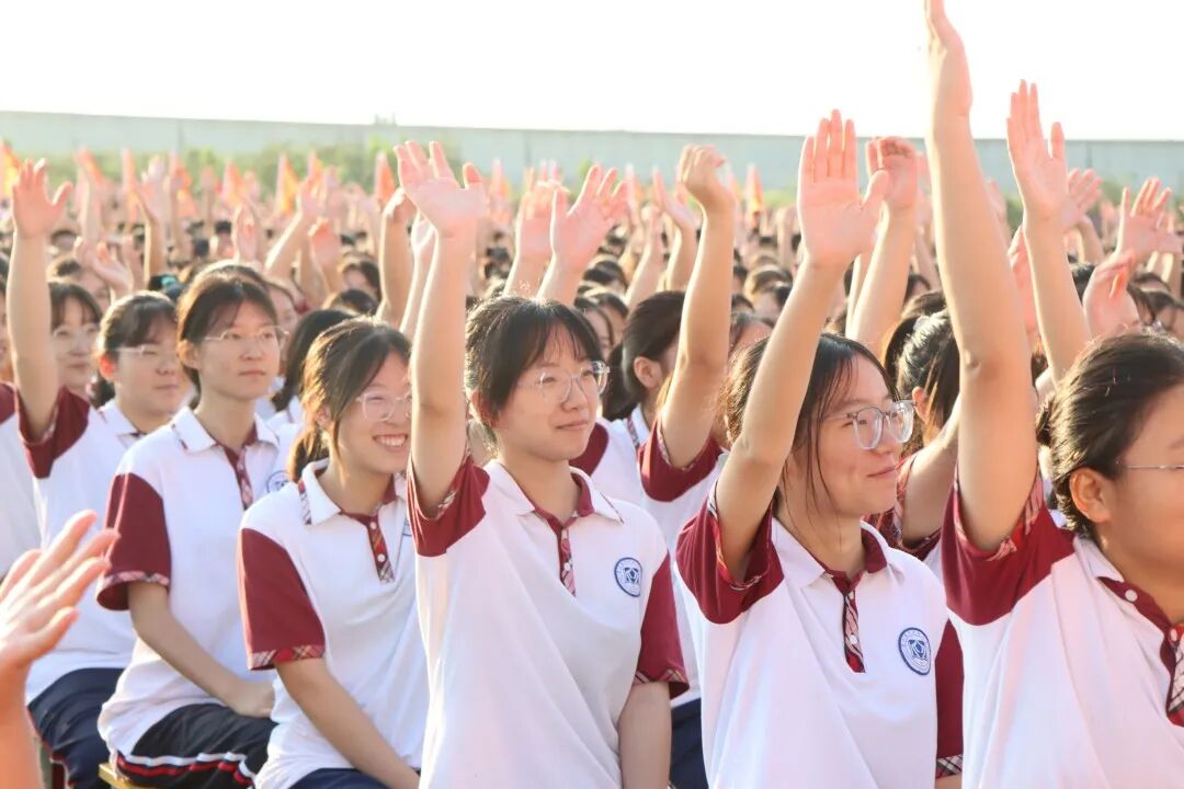 “北京师范大学,中南大学,河南大学,郑州大学……同学们在刘老师的引导下,紧握拳头,当众大声说出自己理想的大学。一遍又一遍齐声呼喊,响彻整个兴源校园,激发出学子们全力冲刺、高考必胜的澎湃激情,将现场气氛推向高潮。