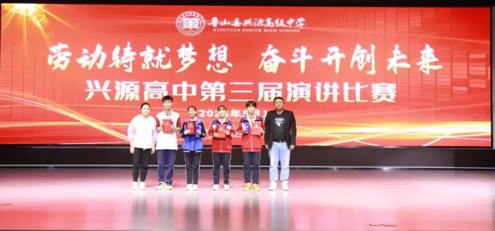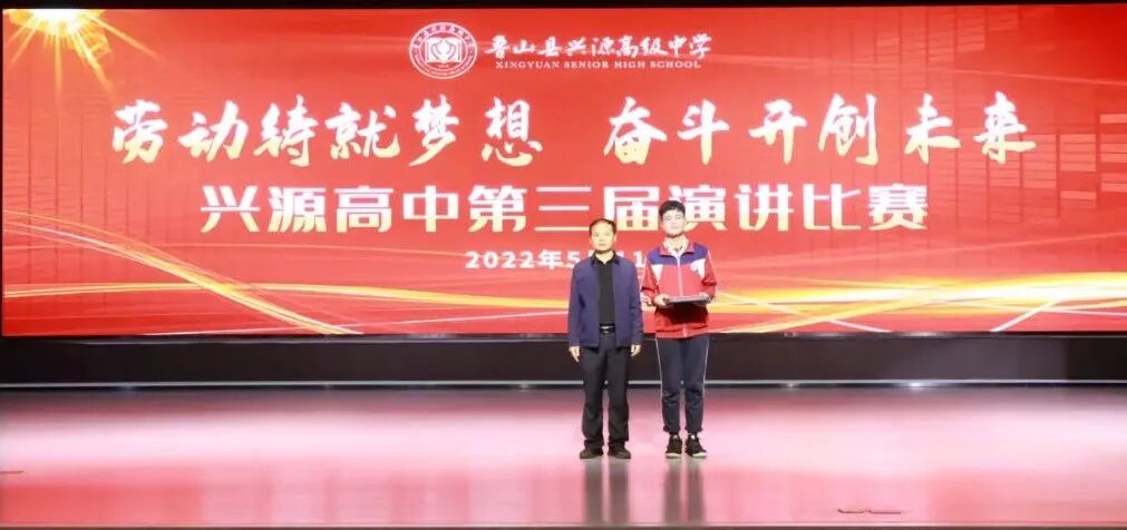 劳动铸就梦想,奋斗书写精彩。世界因劳动而改变,生活因劳动而美好。为积极响应国家号召,传承发扬“劳模精神”,引导学生热爱劳动,向劳动者致敬,向榜样学习。5月11日晚上由兴源高中教导处牵头举办“劳动铸就梦想,奋斗开创未来”为主题的第三届演讲比赛在报告厅顺利举行。