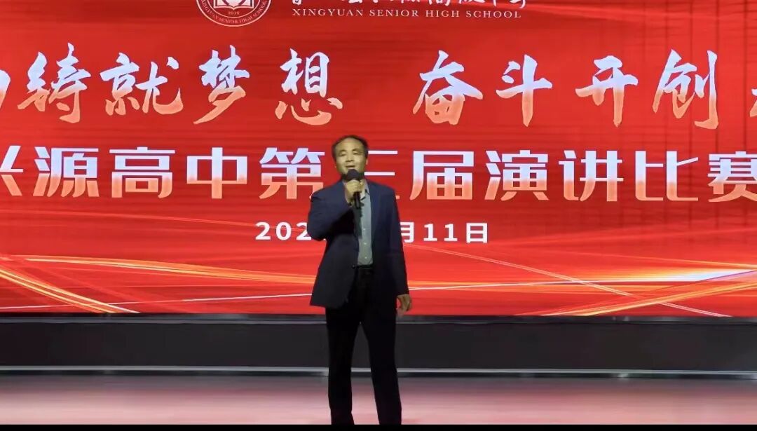 青年是国家的未来,在“后浪推前浪”的历史规律中,青年一代不仅责无旁贷,正以时不待我的紧迫感担负起时代赋予的重任,更重要的是青年一代具备追梦的条件和能力。樊校长寄语兴源学子要牢记习总书记嘱托,努力成为有理想、敢担当、能吃苦、肯奋斗的新时代好青年,努力学习、认真比赛,最后预祝本次演讲比赛圆满成功。