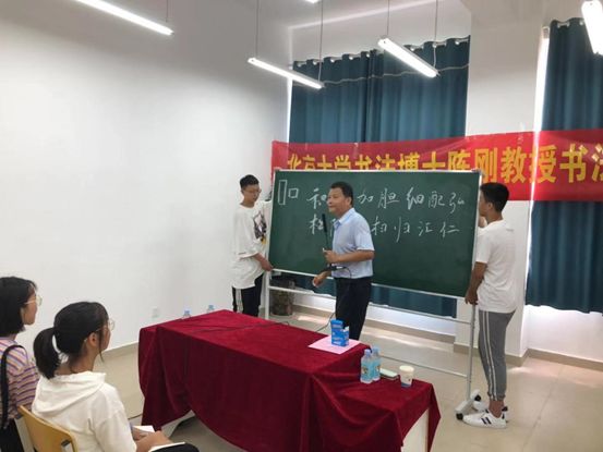 同学们在教室抓住这次学习的机会,专注地聆听,认真地临摹,整个教室充满浓浓的学习、研究、欣赏的气氛,授课现场的同学更是近距离的领略了中华书法的独特魅力,感受到了书法的奇妙表现力。
