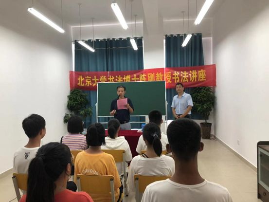 为弘扬中华民族传统文化,提高学生鉴赏中国书法艺术的能力。8月24日,鲁山县兴源高级中学很荣幸的邀请到北京大学书法博士陈刚为全校师生进行书法教学指导,陈刚博士现为北京大学书法艺术研究会研究员、中国硬笔书法协会副秘书长。