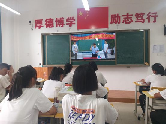 陈博士通过全校视频通话设备首先向广大师生讲述了书法的起源、演变历史、发展历程,接着从练字对高考的重要意义讲起,他提到高考评卷对卷面整洁、字迹规范等非智力要素要求越来越高,可以说字的好坏也直接影响高考成绩。