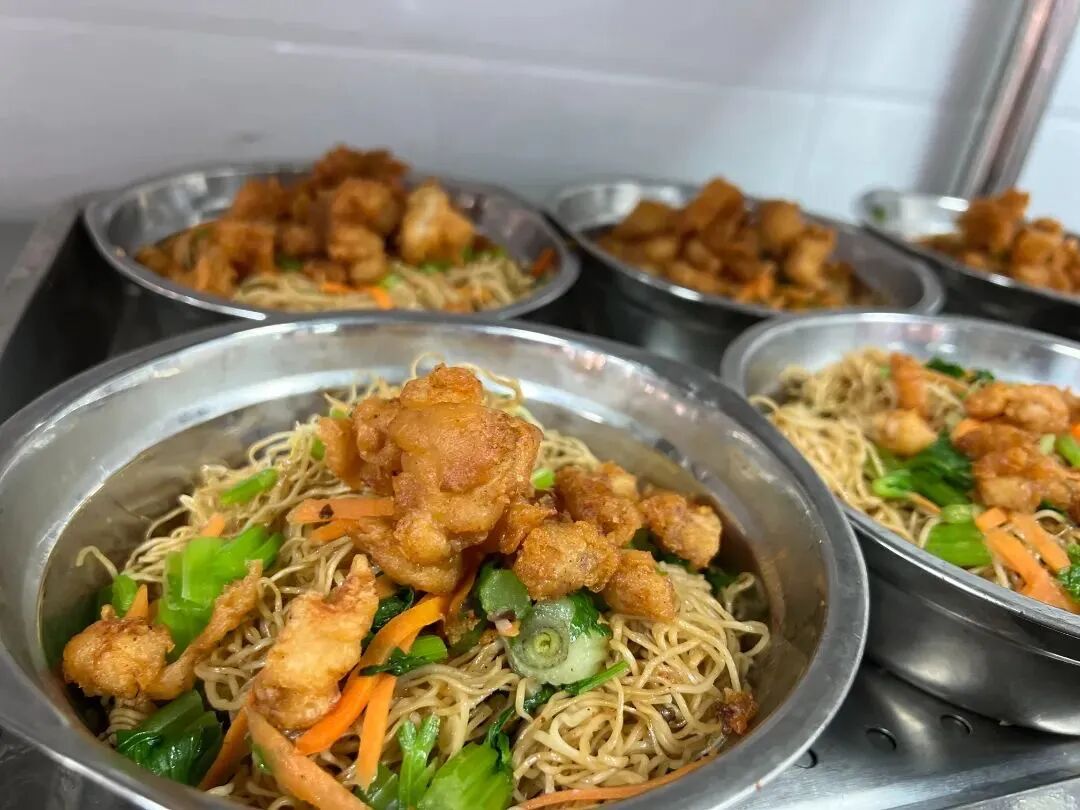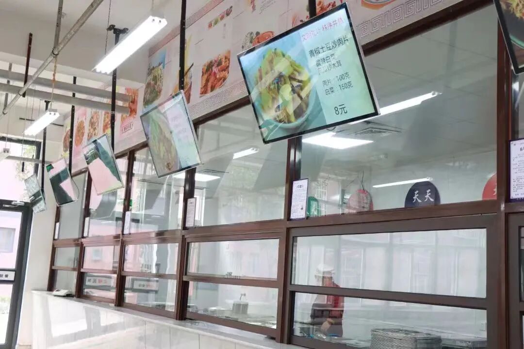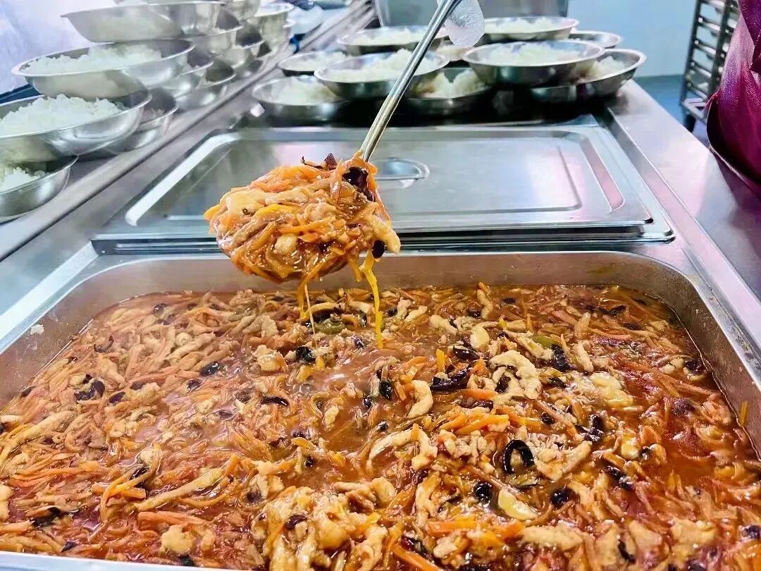 食堂的饭菜多种多样,满足了学生的味蕾,免费加米、加面,保证学生都能吃饱、吃好。