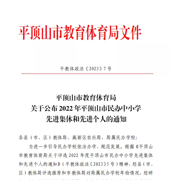 近日,平顶山市教育体育局下发《关于公布2022年平顶山市民办中小学先进集体和先进个人的通知》,兴源高中喜获市级“优秀民办学校”殊荣,此项荣誉是平顶山市教育体育局对兴源高中建校4年来发展成果的认可。