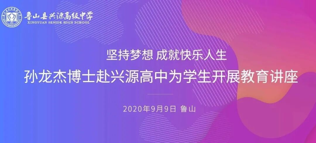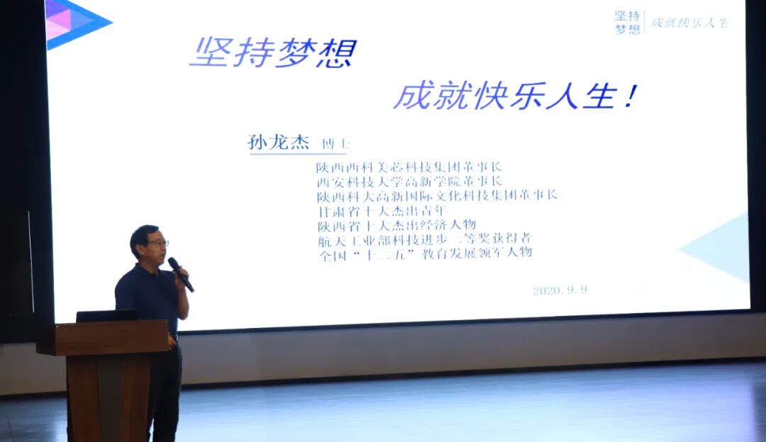 9月9日下午,以“坚持梦想,成就快乐人生”为主题的教育讲座在我校报告厅顺利举行,此次活动特别邀请西安科技大学高新学院董事长孙龙杰博士,兴源高中校领导、老师及学生参加了本次活动。