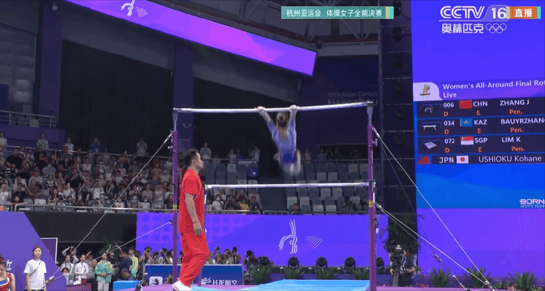 每一次,她都选择迅速起身继续比赛。虽然她的高低杠项目只拿到10.100分,但却收获了所有观众的掌声与敬意。现场解说也连连赞叹:“多么坚强的女孩!”