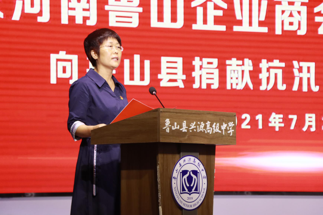 7月25日上午,在兴源高中报告厅举行了“守望相助,共度难关”——北京河南鲁山企业商会、北京兴源集团向鲁山县捐献抗洪救灾基金仪式,县领导王红敏、杨洪峰、李斌,教体局领导李怀海、吕聘萍,公安局领导赵国军,县工商联代表,北京河南鲁山企业商会代表,北京兴源集团代表出席活动。本次活动由县领导李杰主持。
