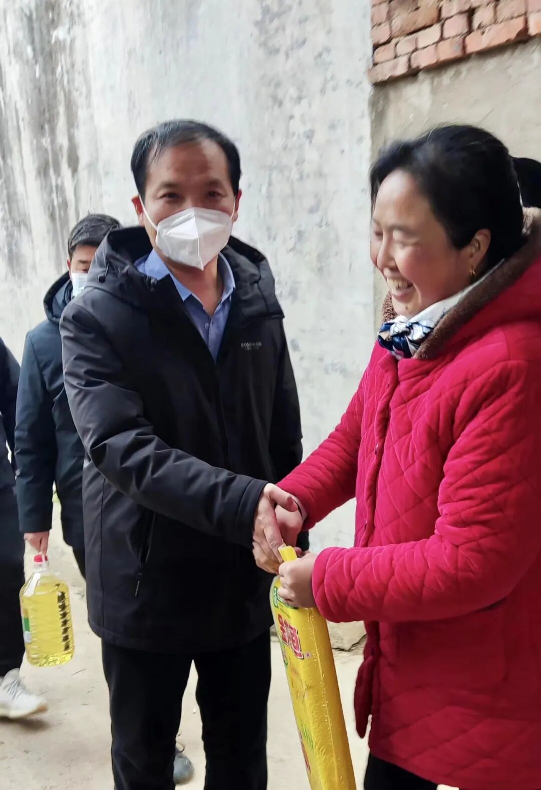 “今年的家庭收入怎么样?”“家里的年货置办的啥样了?”“身体都挺好的吧?”“还有啥困难,有啥需要的就和我们说,我们一定尽力帮忙!”在走访慰问期间,樊校长每到一处,都要与家长们亲切交谈,仔细询问他们的身体状况和家庭生活的情况。