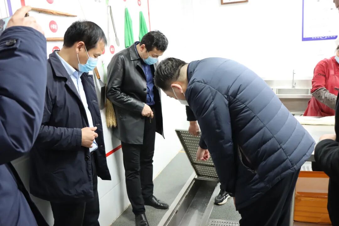 孙局长一行听取了学校食品安全工作管理汇报,实地查看了原辅料仓库、操作间、备餐间等场所食品安全情况,并详细检查了晨检、清洗消毒和留样等制度落实情况。