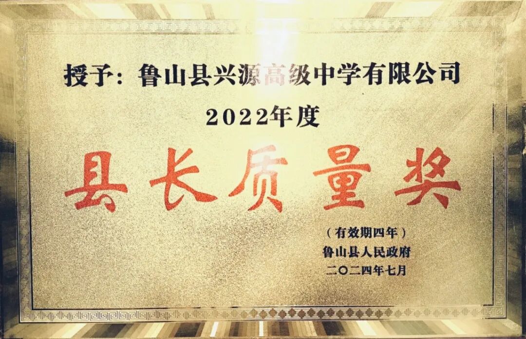 兴源高中荣获鲁山县人民政府颁发的县长质量奖