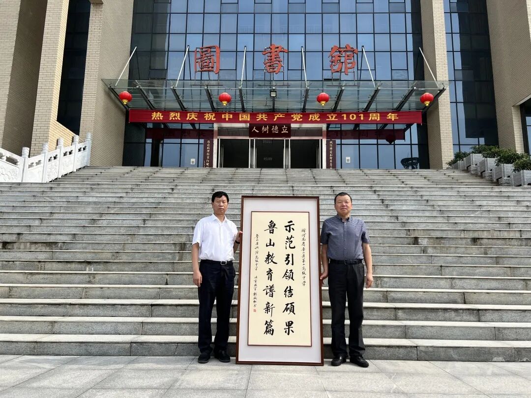 陈永杰一行前往鲁山一高赠牌